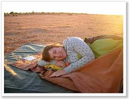 Een gezellige avond rond het kampvuur met een heerlijk zelf gekookte maaltijd in het vuur en daarna was het tijd om in onze ‘swag’ te kruipen. Een swag is een vrij goed matje (zoals de dikke van nomad of zo die zichzelf opblazen) met daarboven een beetje tent stof (geen synthetische, maar van de stevige dikke donkergroene van oude patrouille tenten) waar je als een slaapzak moet inkruipen. Je kan als je dat wil een flap over je hoofd leggen, maar dan kan je moeilijk ademen. Ik heb gewoon met mijn hoofd in de open lucht geslapen. Een hele ervaring. En eigenlijk best wel leuk.